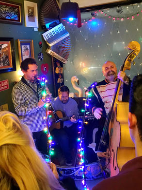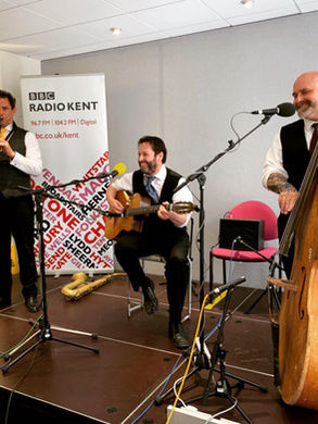 Sizzling guitar, throbbing bass, swinging clarinet, hot sax and smooth vocals playing a groovy mix of Gypsy Jazz, Swing, Latin and a bit of Rock 'n' Roll thrown in for good measure!